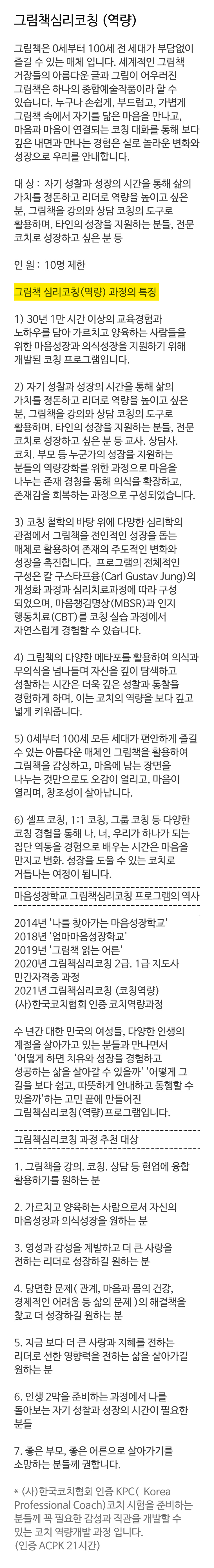 ¸¶À½¼ºÀåÇб³ÀÇ ¸¶À½¼ºÀåÄÚĪ(±âÃÊ), ±×¸²Ã¥½É¸®ÄÚĪ(¿ª·®), ¸¶À½¼ºÀå½É¸®ÄÚĪ(½ÉÈ), ¸¶À½¼ºÀåÇÁ·ÎÄÚÄ¡¾ç¼º°úÁ¤(Á¾ÇÕ) °úÁ¤ÀÌ »ý°Ü³ ±î´ßÀÔ´Ï´Ù.